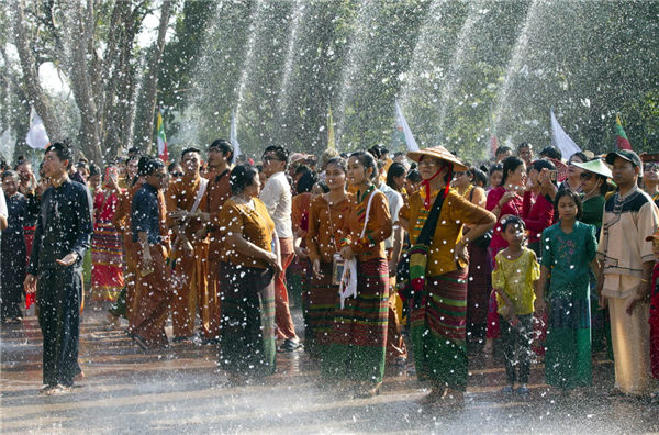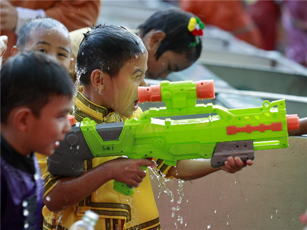 缅甸掸族庆祝传统泼水节 街头“水仗”狂欢嗨翻天
