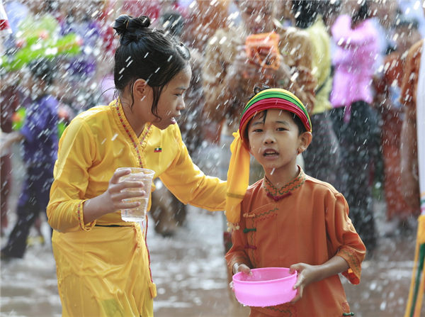 当地时间2019年3月31日,缅甸仰光,掸族传统泼水节庆祝活动举行,人们在水花四溅的街头肆意狂欢、互相泼水。 掸族的泼水节是掸族一年中最重要的节会。泼水节节期有3-4天。在泼水节的第一天,掸族的善男信女们清晨要休浴更衣,要到寺庙中拜佛。他们在寺院中搭起彩棚,将佛像请到彩棚中浴佛。姑娘小伙子们成群结队地挑来清水为佛像洗尘。掸族人在新年泼水节期间还要布施,要拜神以求来年五谷丰登、身体健康。掸族历来有敬老的传统。泼水节期间。晚辈们会采来皂角、大叶解宝捣成汁做成洗发水献给长辈。