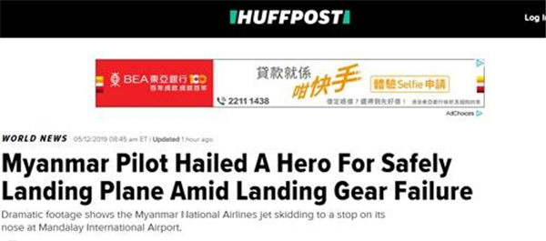 《赫芬顿邮报》12日在题为“在降落装置失效后使飞机安全着陆,缅甸机长被称为英雄”报道中提到,尽管起落架失灵,这名缅甸飞行员还是安全地着陆了他的飞机,赢得了英雄般的喝彩。