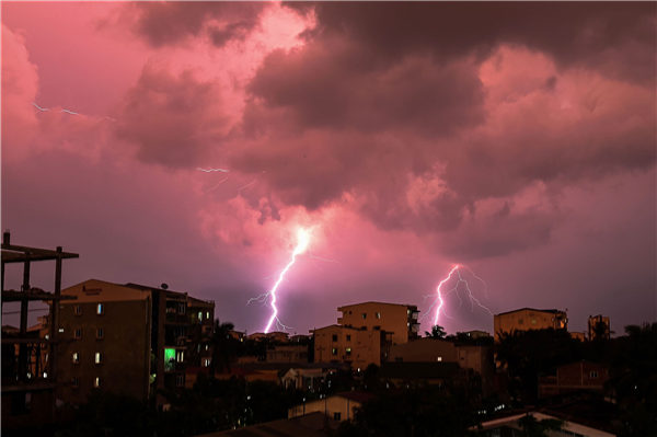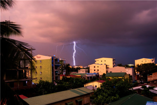 当地时间2019年5月22日,缅甸仰光,闪电照亮了夜空。