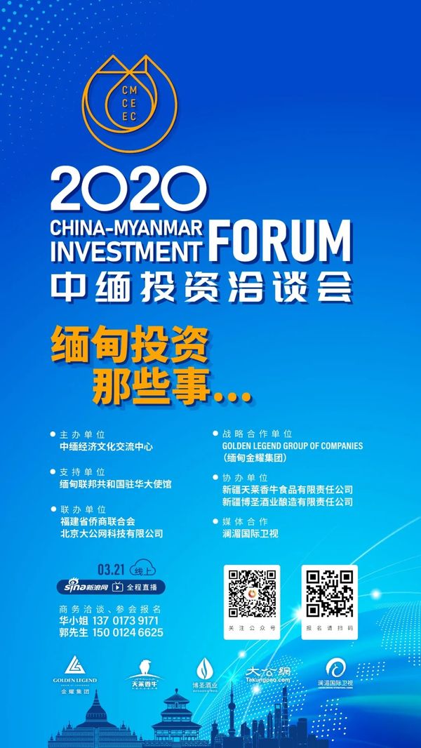 今年中缅中心与缅甸驻华大使馆紧密合作,将在中国产业聚集度高的主要城市陆续举办12场系列活动,平均每个月一场以上的活动;还将组织中国企业到缅甸的商务考察等活动。因为疫情的影响,原计划线下举办的“中缅投资洽谈会”活动改为3月21日19:30在新浪财经直播,敬请期待!