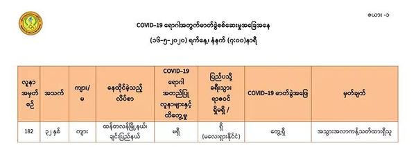 至此,缅甸国内新冠病毒确诊人数增加到182人。