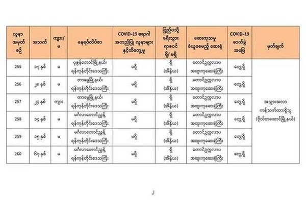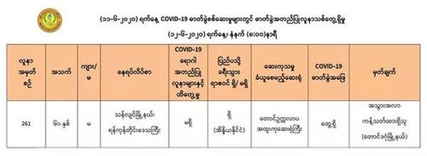 至此,缅甸国内新冠病毒确诊人数增加到261人。