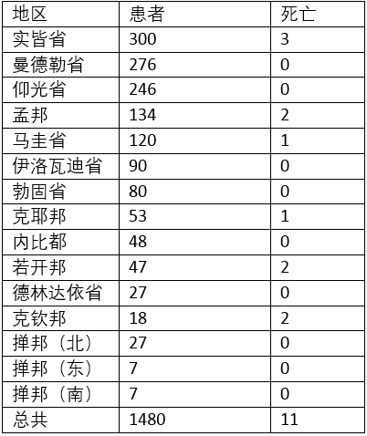 其中实皆省是登革热高发区、其次是曼德勒省和仰光省。
