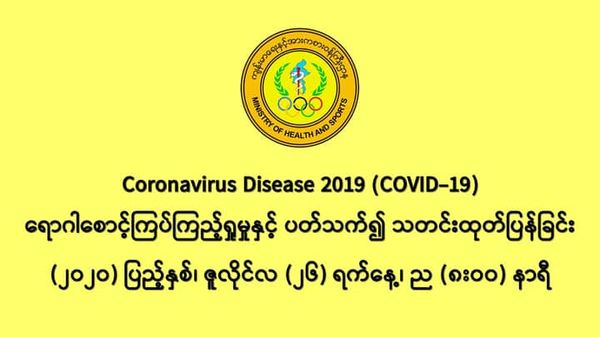 缅甸卫生暨体育部于7月26日晚上8时及7月27日上午8时分别发出公告,介绍缅甸国内这新冠病毒疫情发展的最新情况。