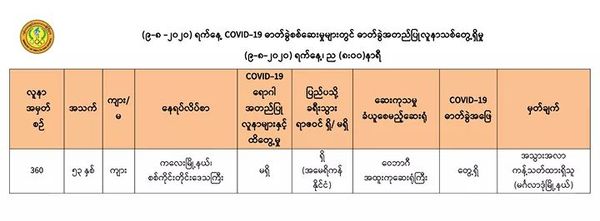 至此,缅甸国内新冠病毒确诊人数增加到360人。