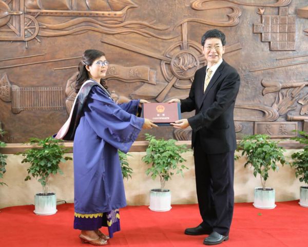 谭书富参赞首先对各位学员克服新冠肺炎疫情带来的各种困难和挑战,以优异的成绩顺利毕业表示祝贺,也感谢各位对中国抗击疫情的坚定支持。谭参表示,促进公平、包容、可持续发展是世界人民的共同心愿,这正是中国设立商务部奖学金的初衷。中方历来高度重视与缅方在人力资源领域的坦诚交流与互惠互利合作,迄今共有129名缅甸学员获得商务部奖学金并赴中国留学。中国政府也将发挥好商务部奖学金的作用,推动开展南南合作,促进包括缅甸在内的广大发展中国家共同走上发展繁荣之路。在共同抗疫和恢复经济两手抓的特殊时期,学员们克服种种困难,坚持完成学业,满载而归。希望大家坚持学习、学以致用,努力探索符合缅甸国情的可持续发展道路,为国家的进步和人民生活水平的提高做出积极的贡献,续写缅中友好胞波情谊新篇章。