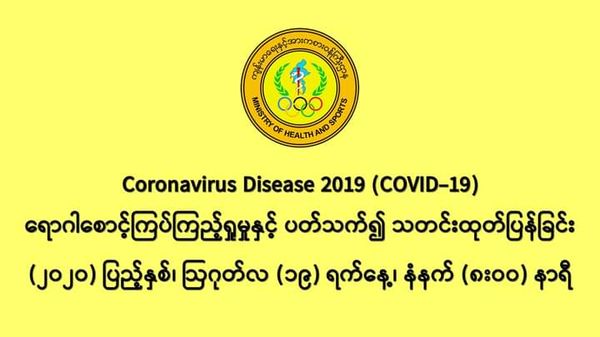缅甸卫生暨体育部于8月18日晚上8时及8月19日上午8时分别发出公告,介绍缅甸国内这新冠病毒疫情发展的最新情况。