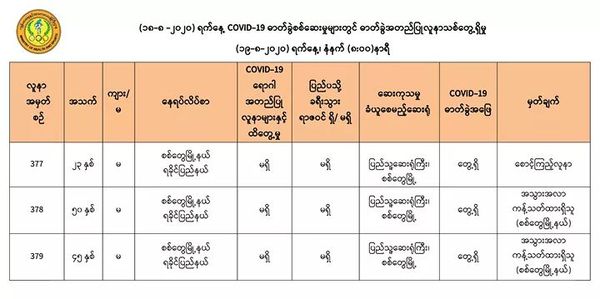 至此,缅甸国内新冠病毒确诊人数增加到379人。