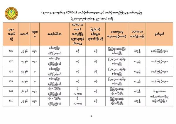 至此,缅甸国内新冠病毒确诊人数增加到441人。