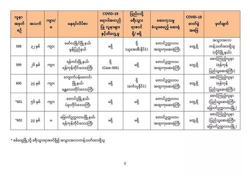 8月28日上午8时,卫生暨体育部再次发出公告,仰光国家卫生化验室对第二批564名人员的化验样本进行化验检查,医药科研所再对25名人员的化验样本进行化验检查,皎漂人民医院对32名人员进行化验检查,共621人的化验样本中,发现有26人的样本中含有新冠病毒。