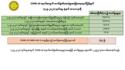 仰光第一军医1000床位医院对215位人员的化验样本进行化验检查,