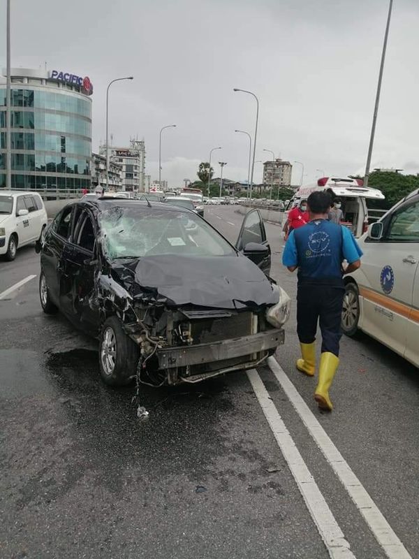 据仰光礼丹社区民间福利组织的消息,9月8日下午2时左右,在礼丹天桥上两辆汽车相撞,发生严重车祸,有3位男子受伤。