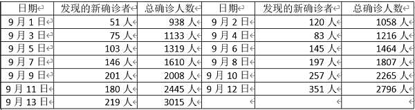 进入9月份,缅甸国内疫情确诊人数急剧地增加,每天发现的确诊人数如下表: