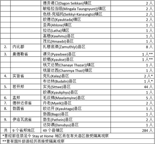 缅甸卫生暨体育部9月15日下午3时发出公告,通告9月14日发现的284名确诊者的一些情况。这284名确诊者来自9个省邦地区,他们所属县镇如下:
