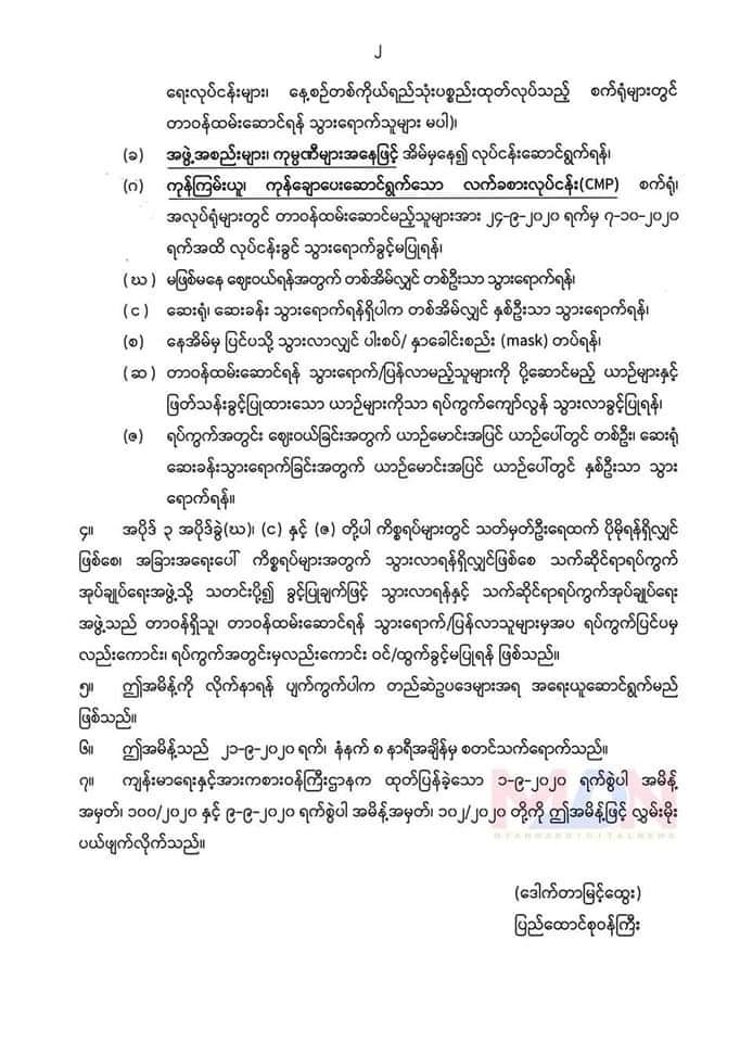 1天之内再发现542名确诊者,而且死亡人数也急遽上升。现在确诊人数正向第6个“千人关”迈进,而死亡人数也很快就要冲破百人大关了。卫生部已宣布仰光全省(不包括孤悬海外的可可岛Coco Island)的禁足令了。公务员采取两周分批上班制(就是分成两批,每批各上班2周),私立民间企业除银行、燃油店、食品及医药店、纯净水工厂等之外全部停业,来料加工的CMP行业工厂也将停工两周(自9月24日至10月7日),仰光全省的“紧张”气氛可见一斑。其实不仅是仰光省,全国各地省邦受到这疫情第二波冲击的县区也不在少数,大家都应齐心协力共度此难关才行了。