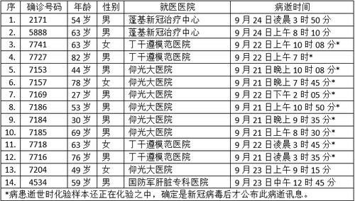 9月23日下午公布的14名确诊者病逝的讯息: