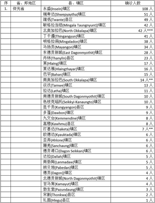 缅甸卫生暨体育部9月30日下午4时30分发出公告,通告9月29日这一天发现的797名确诊者的一些情况。本来29日晚上8时公布说发现795名确诊者,后来发现有一化验室遗漏了2人的名单,故确诊者实际上是797人。这797名确诊者来自12个省邦地区,他们所属县镇如下: