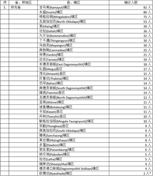 1171名确诊者中,仰光省40个县镇区感染773人,占总人数的66%,确诊人数比例有所降低但照样是居于全缅之冠,而确诊人数的县区总数到达40个县区。