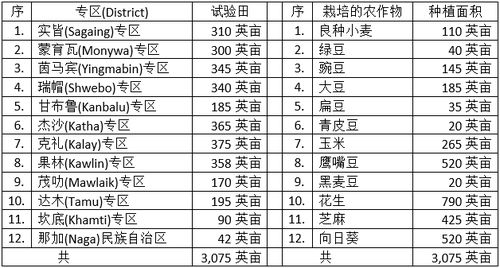 省内各专区准备设立的模范试验田面积及各种作物试验田面积如下表:
