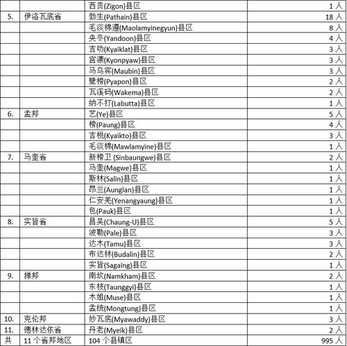 缅甸卫生暨体育部11月6日下午4时发出公告,通告11月5日这一天发现的995名确诊者的一些情况。这995名确诊者来自11个省邦地区,他们所属的县镇地区如下: