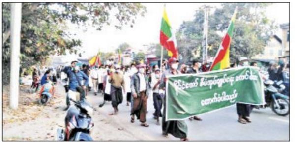 据2月10日出版的缅文《镜报》报导,曼德勒省及勃固省有部分县区的民众举行集会游行支持缅甸军方“接管政权”。这些县区分别为:曼德勒省密铁拉(Meiktila)县区U Hla Myo领导的约1万名民众,勃固省丹那平(Thanatpin)县区U Zaw Tun领导的约100名民众,瑞琴(Shwegyin)县区U Aung Win领导的约230名民众,耶达谢(Yedashe)县区U Aung Naing Tun领导的约300名民众,彪(Pyu)县区U Kyaw Htay领导的400名民众,奥敦(Oktwin)县区的U Win Myint领导的约150名民众,班洞(Pandaung)县区Daw Khine Zin Phyo领导的300名民众,榜地(Paungde)县区U Win Hlaing Tun领导的400名民众,德光(Thegon)县区Daw Ohmar Moe Moe Aung领导的300名民众等。
