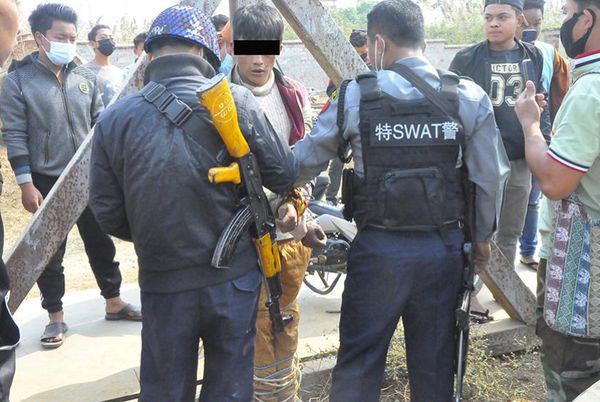 3月9日上午9:30时左右,掸邦北部木姐市民众围捕盗窃摩托车的两名男子,并从其中一男子身上搜查到一枚手雷。