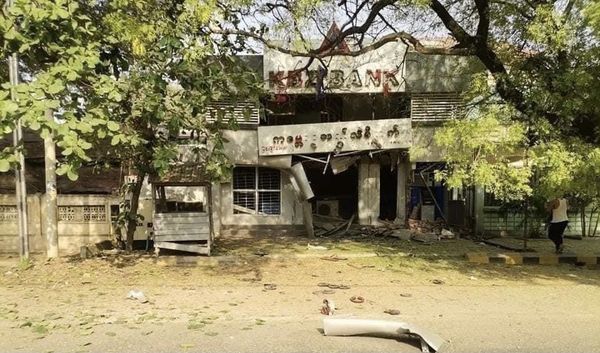 4月18日下午4时左右,在曼德勒省敏建市(Myingyan)钟楼附近的甘普萨银行(KBZ)分行发生一起爆炸事件。