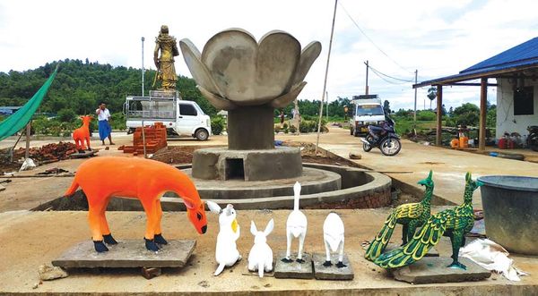 “温托土司纪念公园利用省政府资助的水泥及民众捐赠的物资,已建好了长度1000英尺(约合300多米)的混凝土(Concrete)路,公园内的林荫树、鲜花等也都已栽种好了。我们温托城的历史是由白虎王时代开始,所以也雕刻好了13 ½ 英尺(约4米)长的白虎雕像,代表本民族的腰鼓、锣鼓、象脚鼓以及孩子们喜欢的孔雀雕像、鹿雕像、鹭鸶雕像及白兔雕像,瀑布、喷泉等都已安装兴建完毕。另外还有长度约为700英尺的混凝土路面的铺设工程、围墙建筑、土司纪念馆这些工程还有继续兴建。”义务负责此公园兴建工程的大师高僧都利亚(Thuriya)这样介绍道。