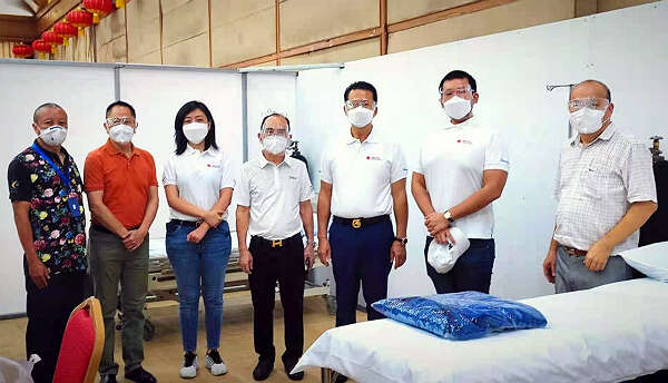 缅甸中华总商会林文猛会长带领医护人员亲临现场指导(右四)