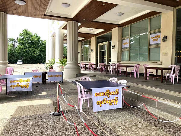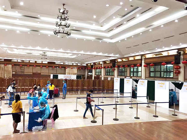位于永盛路和昂德玛耶达路22号A(22-A, Aung Dhama YeikThar Street, Yangon-Insein Road)的仰光云南会馆,占地宽广,有篮球场,停车场,礼堂宽敞明亮,非常适合作为接种疫苗的场所。在云南会馆领导和工作人员的共同努力下,接种疫苗的场地布置井井有条,人们在大厅里耐心等候,接种疫苗工作正在紧张有序进行……