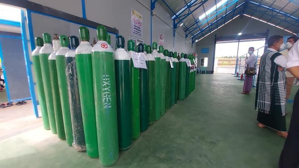 据悉, 尽管妙瓦底专区新冠肺炎的发病率有所下降,但该厂每天仍在生产约 100 个 40 升的氧气瓶。