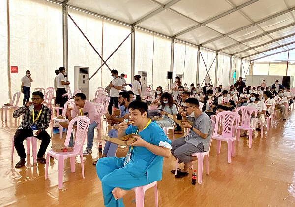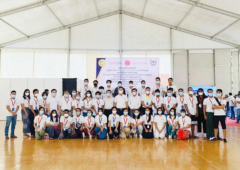 9月20日,缅甸中华总商会会长、疫苗接种工作委员会总指挥林文猛、苏汝波副会长、陈忠文副会长、何其林主任、赵德仁副主任、外交组长杨胜富、接种疫苗组长董浩松医生等等疫苗接种工作委员会成员来到了仰光Thuwanabumi Event Park疫苗接种中心,慰问现场工作人员,感谢医疗组、安保组、后勤组等等工作组的辛勤付出;感谢商会志愿者、福兴兄弟集团志愿者服务队、广东工商总会志愿者服务队等等志愿服务团队的无私奉献,向他们致以节日的问候,并与他们共度佳节。