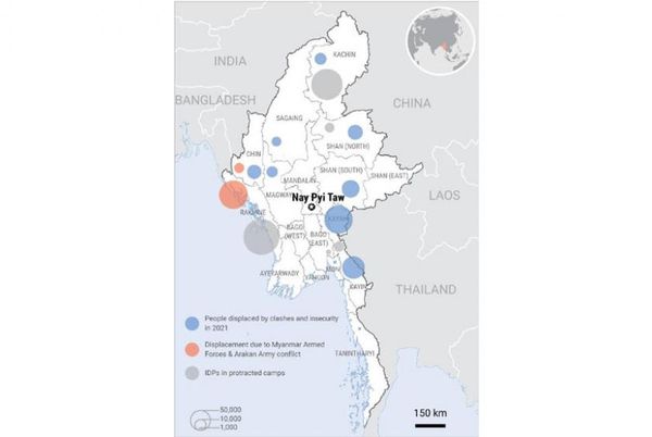 此外,在钦邦,特别是坦德朗市军政府与人民国防军之间的武装冲突正在加剧。根据9月13日的数据,与钦邦接壤的大部分乡镇中,约有12000人流离失所。