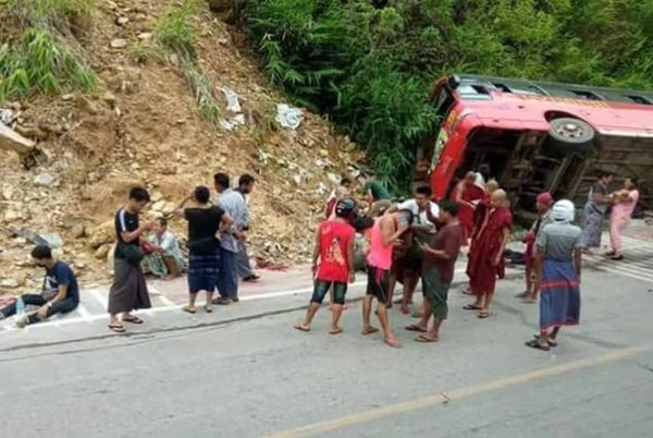 10月13日下午,一辆载有从泰国返回的缅甸移民劳工乘坐的巴士,在妙瓦底(Myawaddy)多纳山(Dawna)前的阿夏路;普崖叻下坡路上发生翻车事故,造成至少10人受伤。