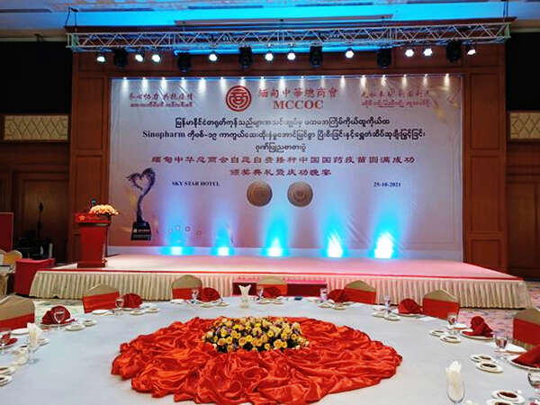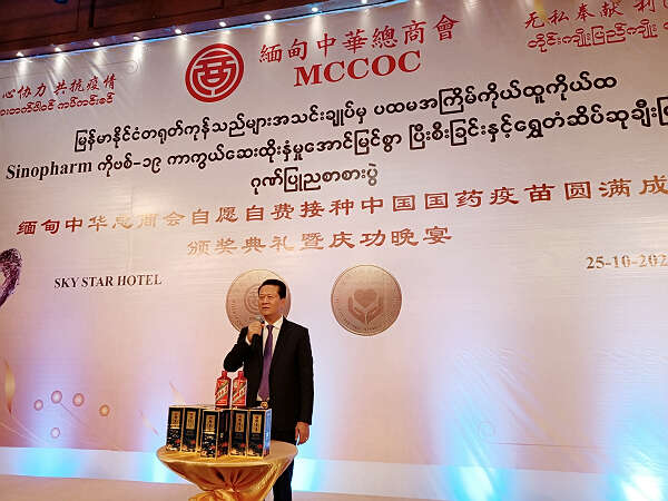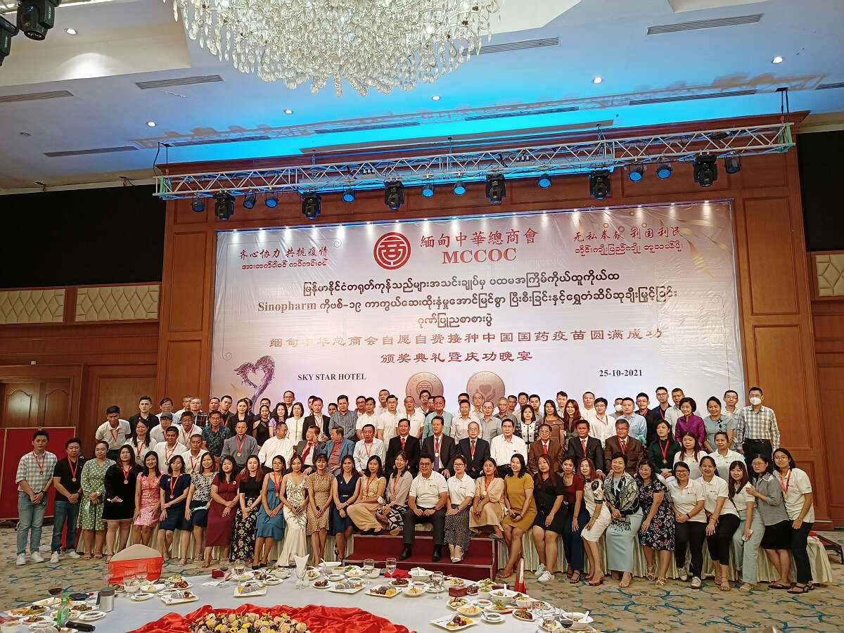 【缅华网讯】2021年10月24日下午5:00时,缅甸中华总商会在仰光星空大酒家举行“缅甸中华总商会自愿自费接种中国国药疫苗圆满成功颁奖典礼暨庆功晚宴”。约一百多位嘉宾出席了宴会。