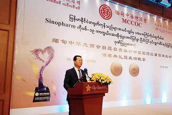 接着高景川常务副会长、林宝泉荣誉会长、何其林主任等先后致词。他们在发言中提到,自愿自费疫苗工作圆满成功,主要是中华总商会发起并得到缅甸福建同乡总会、仰光云南会馆、缅甸广东工商总会的参与和支持。特别必须提出,参加志愿者工作的年轻人很多,其中缅甸广东工商总会的年轻志愿者人数为最。除了社团之外,福兴兄弟集团志愿者团队、瑞丹伦集团、瑞默公司、AA医疗公司、Sealion冷链公司等都发挥了重要的作用。