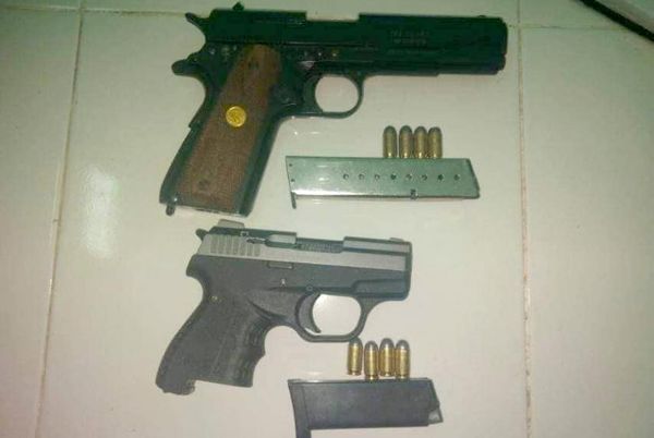 妙瓦底专区警察前往检查时,在带有仰光收件人姓名的一个白色麻袋中,混夹在毛毯中的Ak.sa.Arms.牌手枪和弹匣、Zoraki m.906.牌手枪和一个弹匣,和8发三八式步枪子弹。