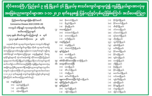 9.掸邦的26个县区中,包括掸北首府腊戌县区、掸东首府景栋县区。掸南首府东枝县区虽不在禁止开课的县区之中,但其附近的许多县区,诸如昔胜(Hsihseng)县区、彬德雅(Pindaya)县区、宾朗(Pinlaung)县区、雅绍(Lawksawk)县区、和榜(Hopong)县区及垒林(Loilem)县区都在禁止开课之列,可见该地区疫情情况的严重了。