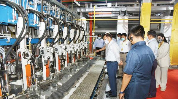 国家管委会主席在参观玻璃厂后指出,民众们采用玻璃瓶子将减少对环境的影响与破坏(按:现在因为大量使用塑胶器皿已对环境造成了巨大影响),现在能在国内生产足够的玻璃瓶子将可减少从国外进口,节省外汇,国内方面也可增加民众们的就业机会。