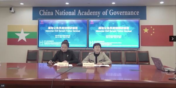12月27日,由中国商务部主办、中国国家行政学院承办的“缅甸公务员培训师研修班”顺利结业。驻缅甸使馆经济商务参赞谭书富、中国国家行政学院国际和港澳培训中心副主任段红霞以及45名缅甸公务员培训师出席了线上结业仪式。
