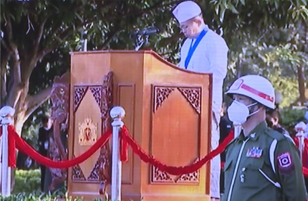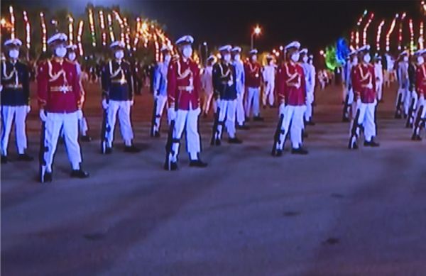 △缅甸独立日内比都升旗阅兵仪式(图片来源:缅甸国家电视台)