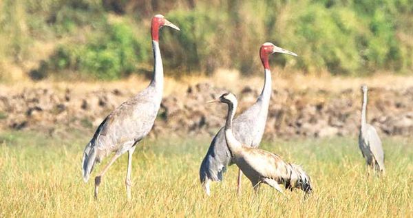 赤颈鹤在生物界鸟纲中属于鹤形目Gruiformes,鹤科Gruidae,该品种鸟类的特征就是拥有细长的腿及长颈。这鹤鸟在全球广泛可见,除了南极洲及南美洲外,其余大洲地区都可见到其等的踪迹。在缅甸能见到的鹤鸟就是这两种:作为本地鸟种的赤颈鹤(Sarus Crane)及冬寒季节时期才进来缅甸过冬的黑颈鹤(属于候鸟)。根据国际环保维护组织(International Union for Conservation of Nature- IUCN)的红色警戒线(Red List)的规定,缅甸境内的赤颈鹤是有可能陷入绝种危机(Vulnerable)的鸟类品种,而黑颈鹤(候鸟)是还无需担忧(Least Concern)的鸟类品种,一位专职研究这鹤鸟品种的学者这样介绍道。