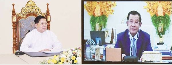 洪森为使缅甸国内僵局能有所突破,也确实付出了一番心血。其在1月25日与马来西亚首相通电话就缅甸问题进行沟通,1月26日午后又与缅甸国家管委会主席敏昂莱大将举行视频会议Video Conference,讨论缅甸国内的和平走向。视频会议结束后,柬埔寨王国政府外交与国际合作部发表了一项公报,说明与缅甸进行会谈的经过与详情。缅甸官方报纸《缅甸之光》报及《镜报》等,也在1月28日刊登了柬埔寨外交部的这一公报。