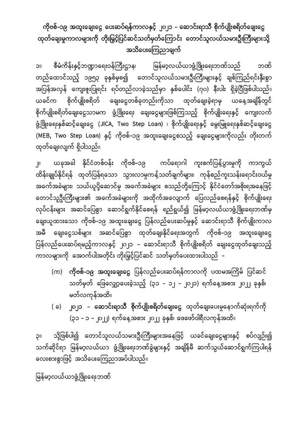 据缅甸农业发展银行发布的消息,将延长疫情特别贷款还款期和2021年冬季农业贷款发放期。