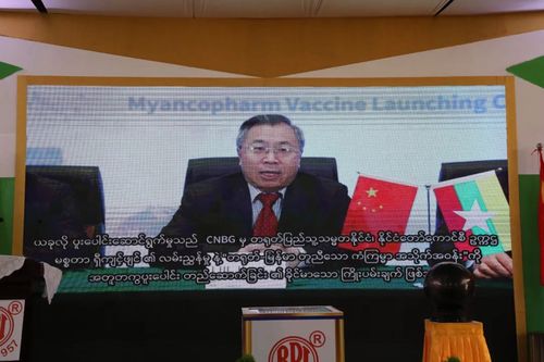 3月23日,国药集团中国生物同缅甸工业部举行中缅合作生产新冠疫苗投产启动仪式。缅甸国家管理委员会秘书昂林兑、中国驻缅甸大使陈海、缅甸工业部长查理丹、卫生部长岱楷温、仰光省首席部长梭登、中国驻缅甸使馆经商参赞谭书富、国药来缅专家组等出席仪式。