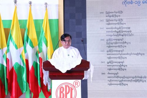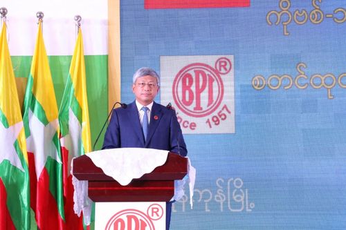 昂林兑秘书在致辞中感谢中国政府、中国驻缅甸使馆和国药集团为缅甸新冠疫苗生产提供的帮助,表示缅甸仍处于奥密克戎毒株引发的第四波疫情期间,正力争实现目标接种人群100%疫苗覆盖,进一步保障人民健康,推动国家经济复苏。缅甸同国药集团合作生产的Myancopharm新冠肺炎疫苗今天正式投产,这对缅甸全民疫苗覆盖和后续加强针接种至关重要。得益于国药集团在生产和质检技术等方面的指导,缅甸产疫苗优质可靠。缅方愿同中方继续努力,争取更多种类疫苗本地化生产。