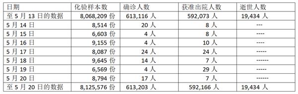 这一个时期全国确诊人数不断减少,到5月15日及5月16日连续两天确诊人数都是4人,但在5月17日确诊人数却又上升到24人,5月18日确诊人数还维持在14人,显示疫情还是会出现反复的情况。现在5月19日确诊人数再次跌到4人,人们还以为会停止上升的趋势了,没想到5月20日的确诊人数又上升到17人,看来疫情要全部消失, 还得等待一段时间呢。