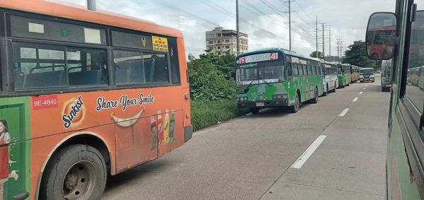 这是今天下午在仰光省达贡港口镇邓皎路交界处的CNG 供应站排队等候加油的人的状况。