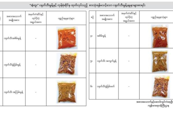 据悉,仰光省马阳贡镇区食品与药品监管委员会成员合作,对“Ant Htoo”辣椒粉的勃印瑙(Bayinnuang)工厂和杂货铺进行了随机抽查,发现该辣椒粉中含有违禁色素。因此,决定收回并销毁商品。